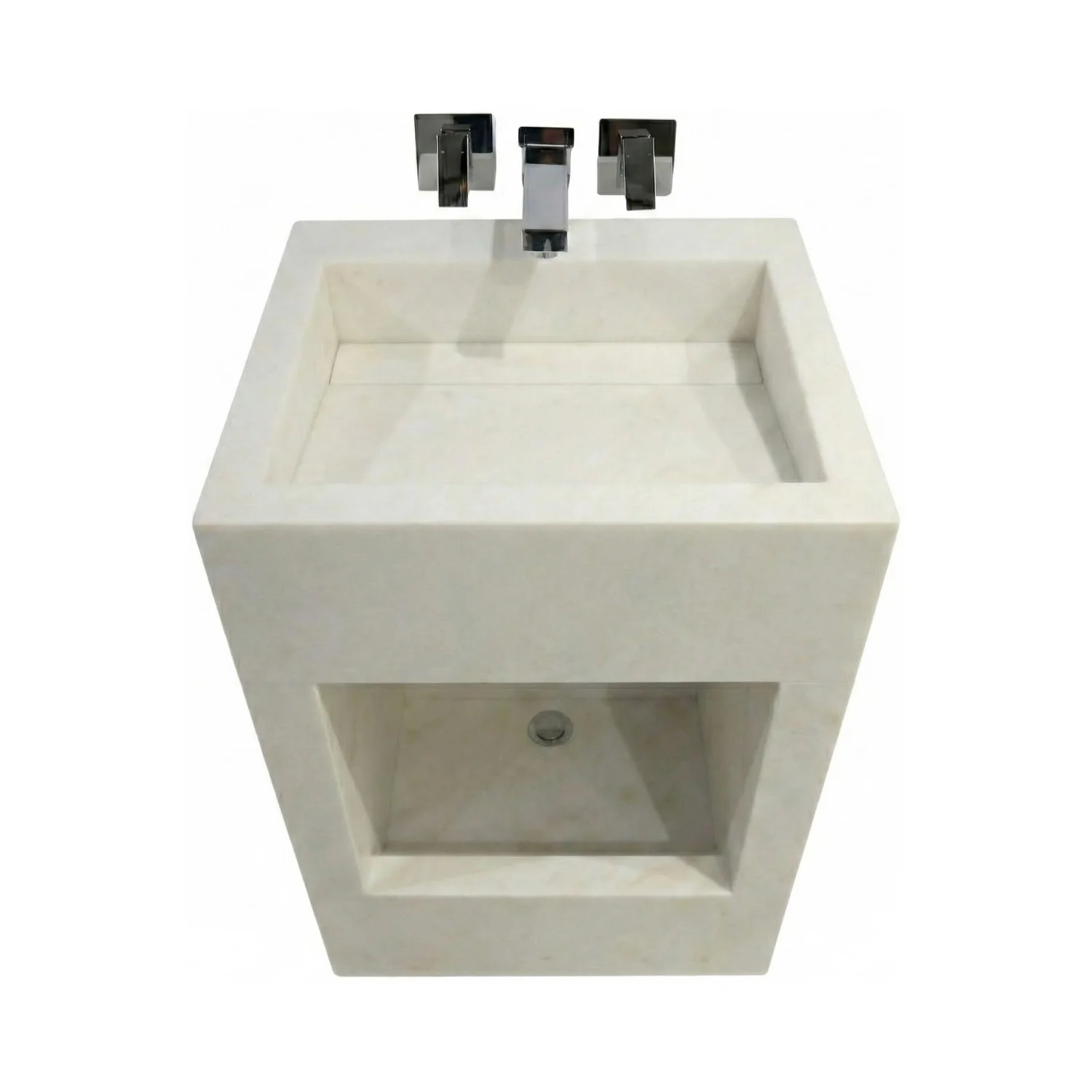 In busy places, easy-to-care-for design is important. This Wudu basin is made for user convenience. The off-white marble finish resists stains and dirt, and the sharp lines and smooth surfaces make cleaning quicker.